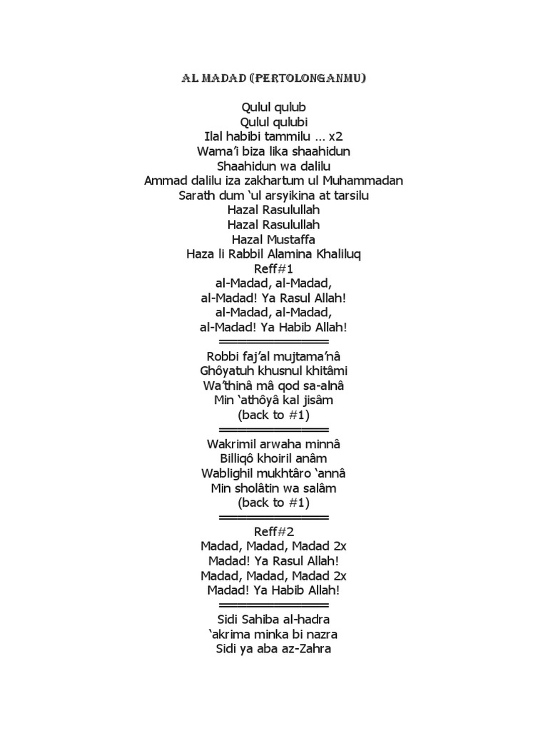 Majalah Dan Artikel Infosais Teks Lirik Shalawat Allah Allah Almadad Mp3 Shalawat Allah Teks